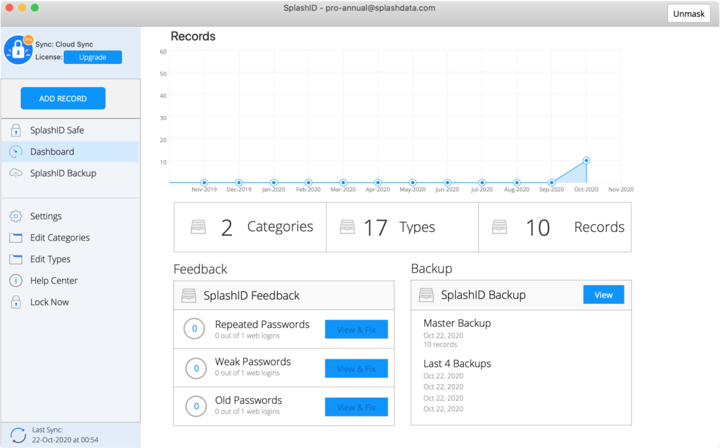 - SplashID Backup - Cloud sync users will be able to access and restore online backups on those rainy days.
