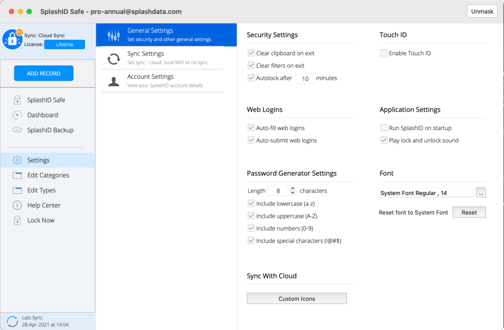 - Custom icons - It allows manual syncing of the user uploaded icons in the macOS SplashID application with the cloud database. Use this if you find that icons on your macOS SplashID don't appear in the web application.