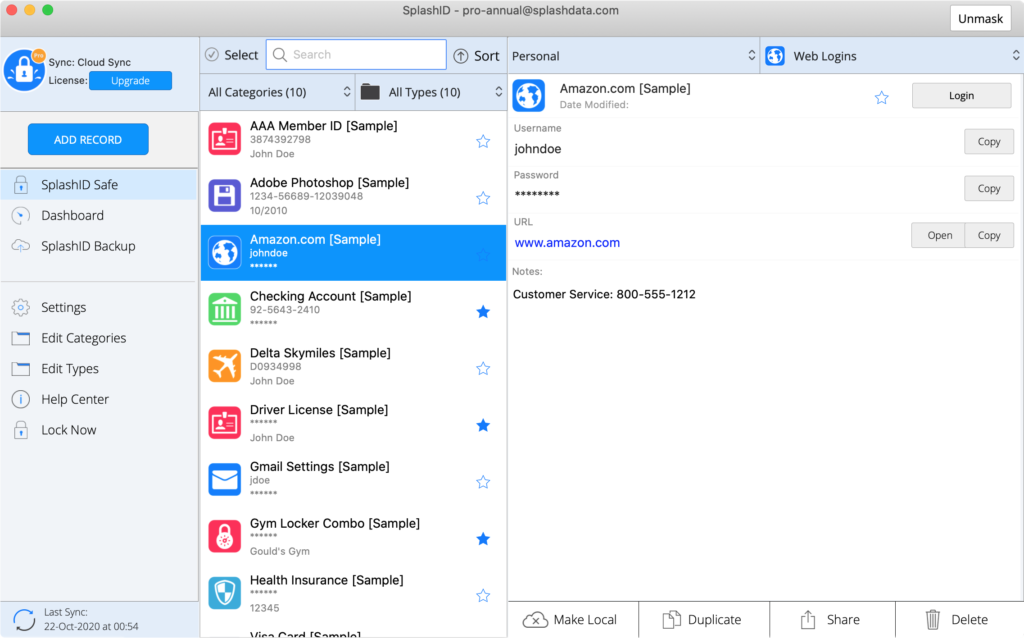 Cloud sync users can also access their records in their SplashID account on our website at https://www.splashid.com/login.