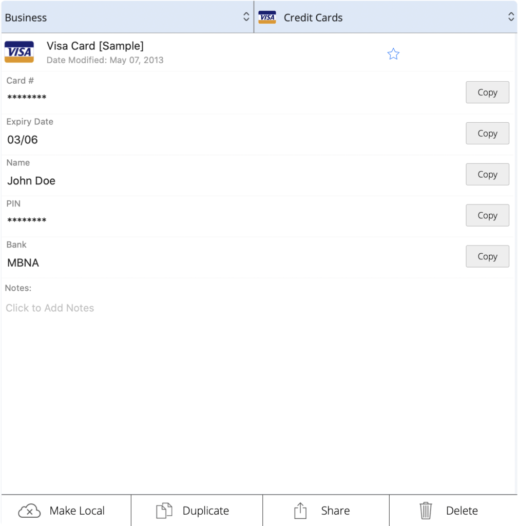 Items may be created or edited on the mobile device or Desktop and the changes can be synchronized over your local WiFi network. You can download SplashID Desktop for Mac or Windows from https://www.splashid.com/downloads.