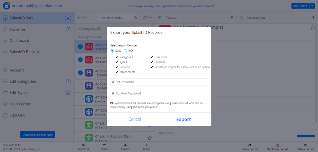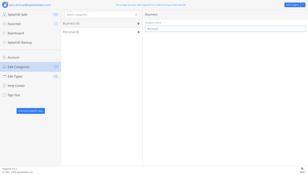 - SplashID Backup - Cloud sync users will be able to access and restore online backups on those rainy days.