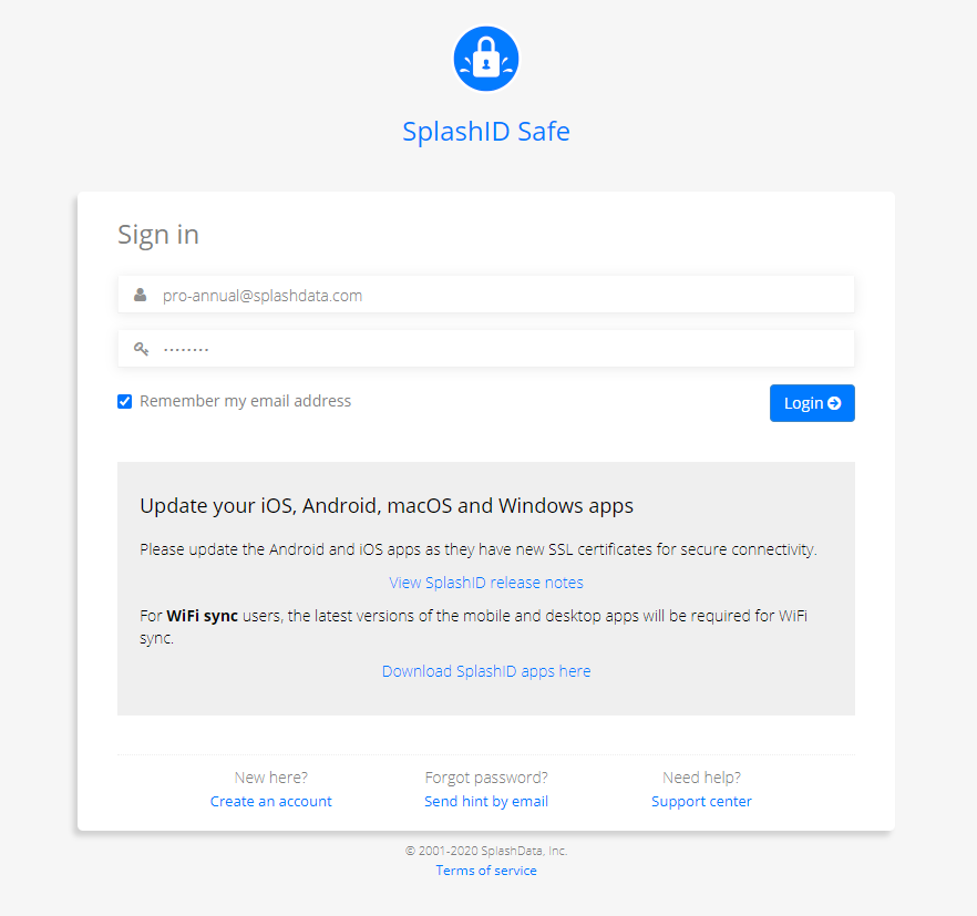 If you had created your SplashID account more than 5 years ago, then you should enter your email address exactly as you had set it up initially. For all new users, the email address should be in lowercase.