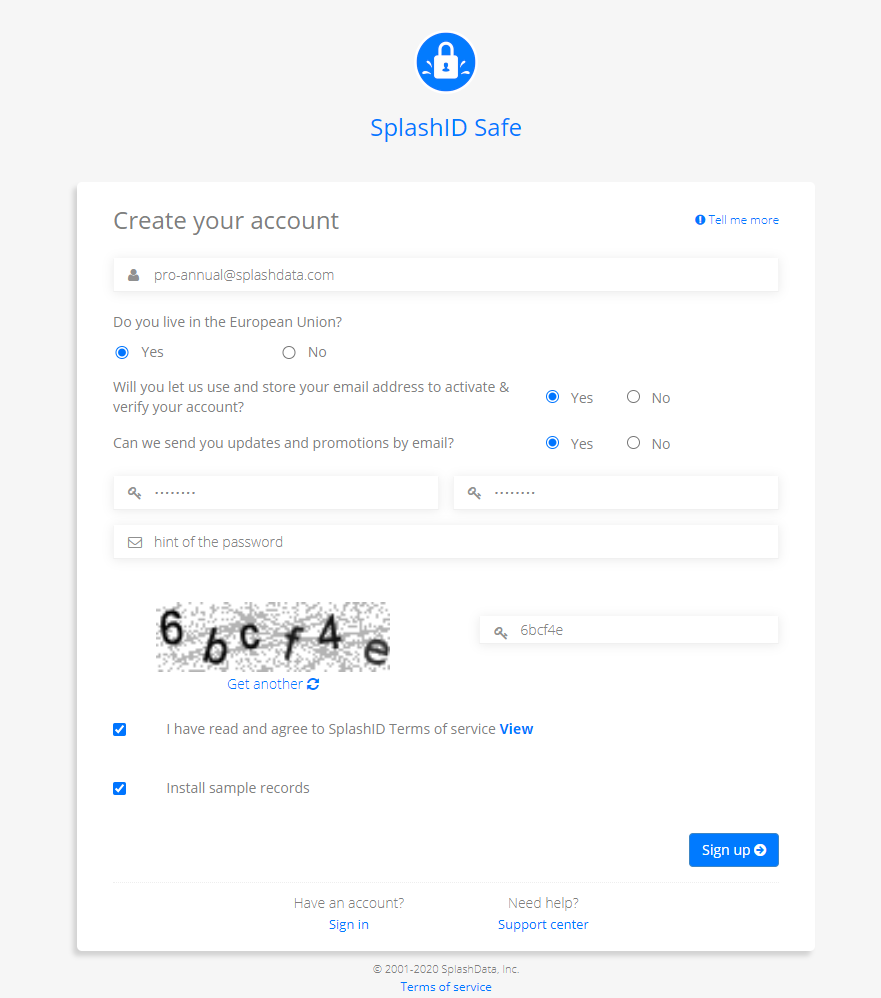You can register for a SplashID account at https://www.splashid.com/register. It is recommended that you enter your email address in lowercase during the account creation.