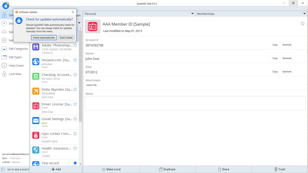 - Check for Update - See if there is a newer version of SplashID Desktop available for download.