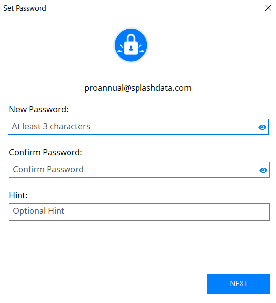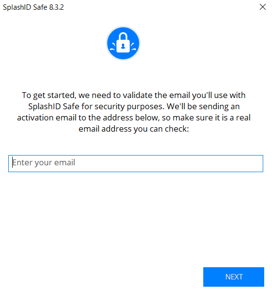 Launch SplashID on your desktop and enter your email address to start creating your account. It is recommended that you use all lower case letters in your email address to prevent any confusion with your account email address. The screenshots below will show you the steps required to complete the registration process.