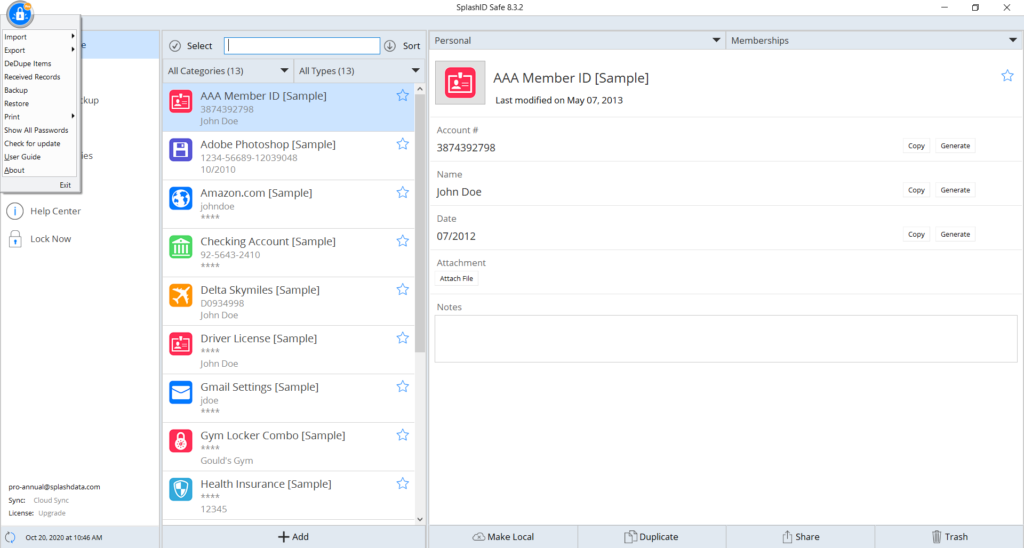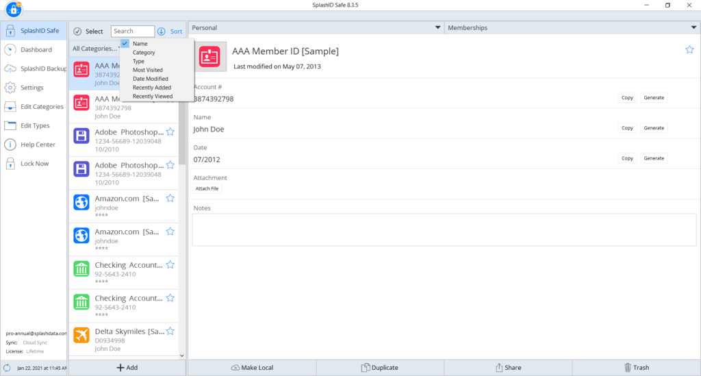 - SplashID Backup - Cloud sync users will be able to access and restore online backups on those rainy days.
